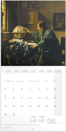 Oplev stemningen og lysvirkningerne, der gjorde maleren Johannes Vermeer berømt, gennem denne smukke kalender. Kalenderen indeholder: