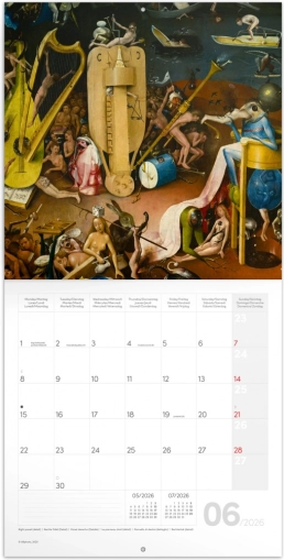 Begiv dig ind i en verden af fascinerende og surrealistiske malerier af Hieronymus Bosch med noteskalenderen for 2026. Detaljerede kompositioner, fulde af symbolik og mystiske scener, fører dig ind i kunstnerens fantastiske visioner.
