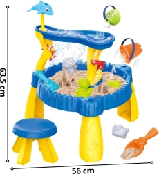 Bord 2i1 til vand og sand sjov – ideel til leg både inde og ude! Fantastisk valg for børn, der elsker kreative lege med vand og sand. Interaktive elementer garanterer timers lærerig underholdning i haven og huset.