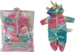 Smuk enhjørninge-heldragt til dukker i størrelsen 40 til 43 cm. Dette modetilbehør byder på regnbuefarver og et gyldent horn, som giver stilfuld leg for alle små prinsesser.