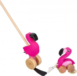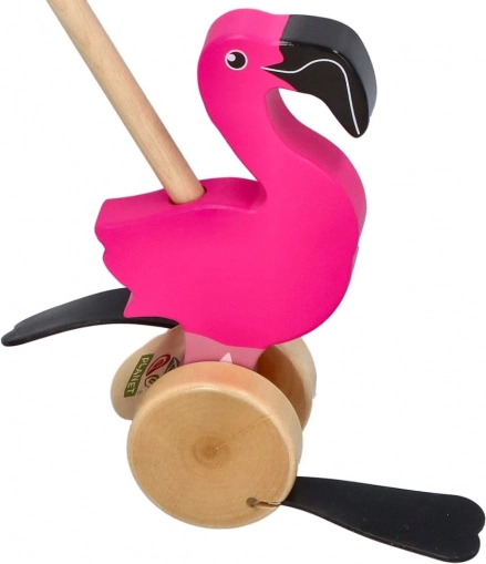Træflamingo på pind er den ideelle ledsager til de første skridt. Takket være de glatte hjul og den stabile konstruktion er den let at skubbe, mens de bevægelige elementer skaber en sjov effekt, der motiverer børn til at gå og udforske.