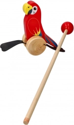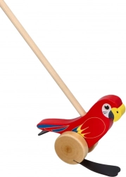 Træ skubbelegetøjet Papegøje fra Nature Planet giver børn glæde ved bevægelse. Når man skubber, ruller papegøjen jævnt på hjulene, og vingerne bevæger sig rytmisk, hvilket motiverer børn til at gå og styrker deres motorik og hånd-øje-koordination.