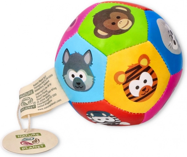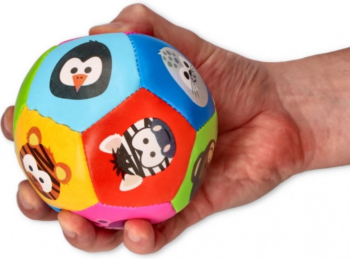 Sød og sikker bold til de mindste med farverige dyrebilleder, der understøtter de første lege, motorisk udvikling og sanseopfattelse. Takket være den bløde tekstile overflade er den velegnet til leg derhjemme og i børnehaven. Let, blød og nem at gribe, med kontrastfarver for visuel stimulering og sikker udførelse til børn. Opfylder kravene til CE.