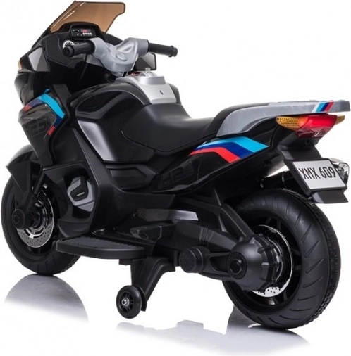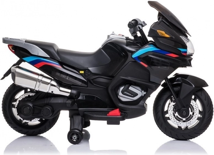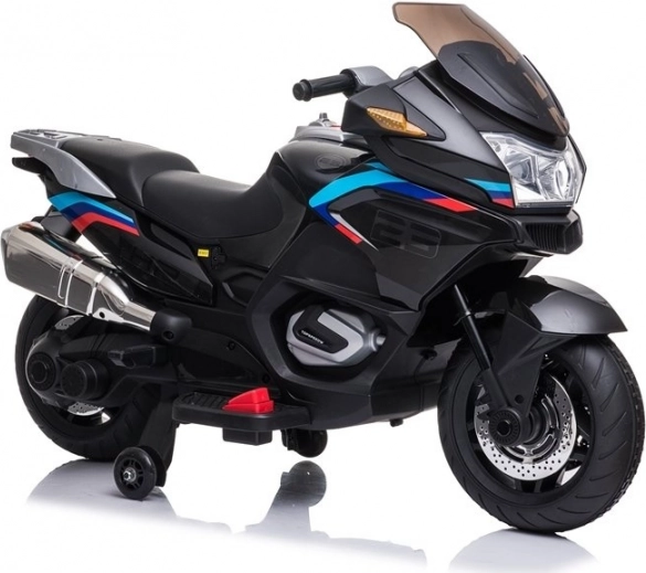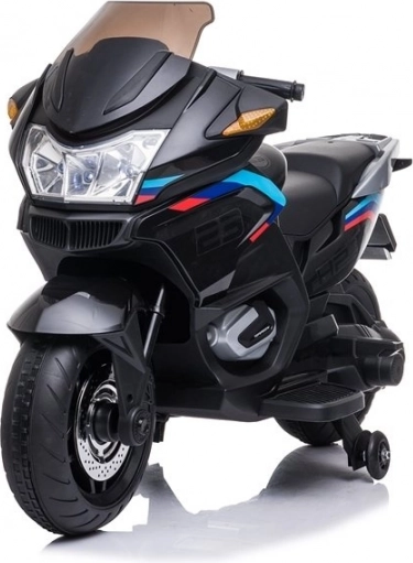 Sportsversionen af den batteridrevne motorcykel har et attraktivt design med udsmykninger, der er karakteristiske for fuldgyldige køretøjer. Den er fremstillet af holdbar ABS-plast med moderne og originale elementer, som fanger ethvert barns opmærksomhed. Ekstra sidehjul hjælper med at holde balancen.