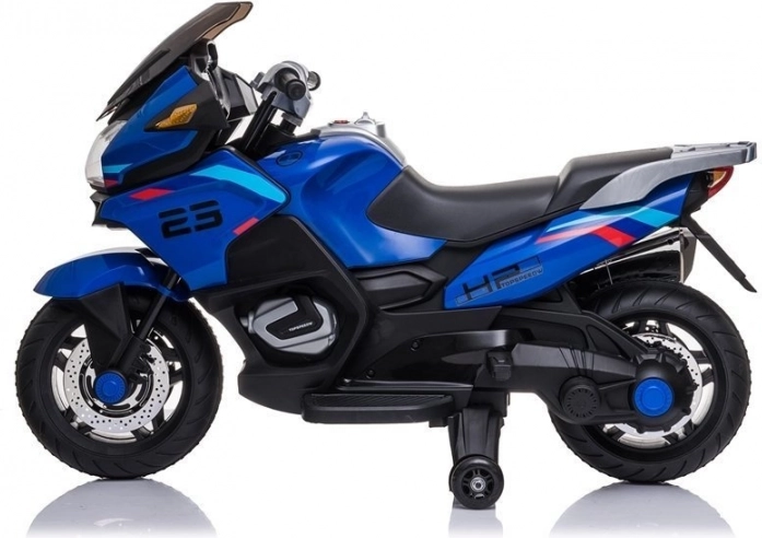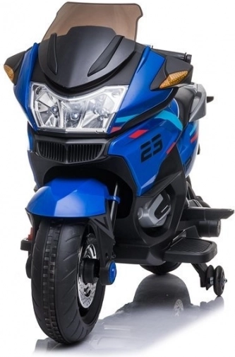 Den sporty motorcykel for børn imponerer ikke kun med sin unikke farvekombination, men også med moderne design og detaljer, der er typiske for store motorcykler. Holdbar ABS-plast med kromdetaljer giver motorcyklen et moderne og innovativt udseende.