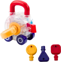 Pædagogisk bilsæt med nøgler er et fremragende legetøj til små opdagelsesrejsende. Indholdet af sættet er tre redningsbiler – ambulance, brandbil og politibil. Hver bil har en speciel lås, som børn kan åbne ved hjælp af farvede nøgler. Dette interaktive legetøj hjælper med udviklingen af logisk tænkning, koordinationsevner og barnets kognitive færdigheder. Legetøjet er fremstillet af materialer i høj kvalitet, som er sikre og sikrer lang levetid. Takket være den gennemsigtige konstruktion kan børn se, hvordan låsemekanismen fungerer, hvilket er meget fængende og lærerigt. Bilernes hjul kører stille, hvilket giver en glidende og behagelig leg på forskellige overflader. Farver og design stimulerer sanserne og understøtter kreativiteten. Sættet er pakket i en æstetisk æske med vindue, ideel som gave.