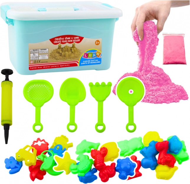 Sandet er usædvanligt blødt, elastisk og formbart – det er let at forme og behageligt at røre ved. Det vigtige er, at det bevarer sin form efter modellering, smuldrer ikke, sviner ikke hænderne, efterlader ikke fedtede spor og tørrer ikke ud. Takket være brugen af naturlige ingredienser er det helt sikkert at lege med, selv for de yngste børn.