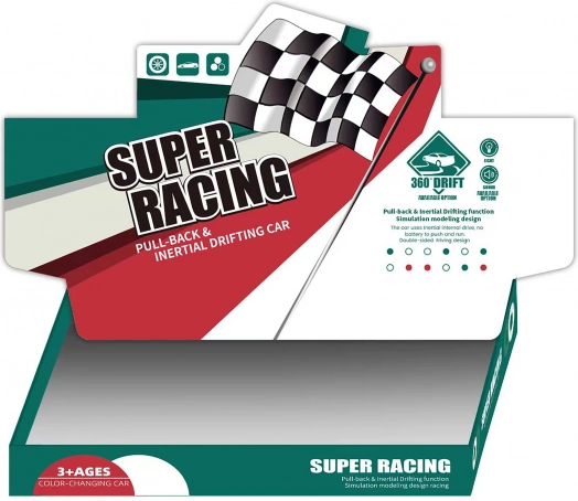Racerbilen med friktionsmotor er den ideelle gave til både små og store elskere af hurtige biler. Takket være den friktionsdrevne motor får du maksimal underholdning uden batterier: