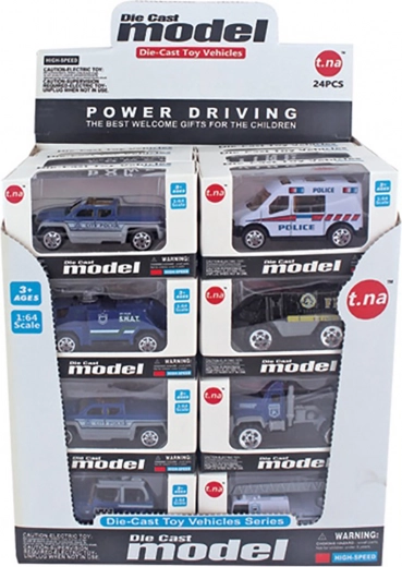 Klassisk politibil med friløbshjul i størrelsen 7,5 cm er det ideelle legetøj for små entusiaster af køretøjer. Fås i seks varianter i en pakke med 24 stk.