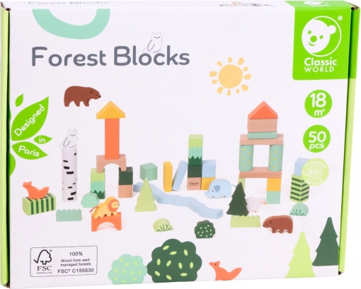 Træklodser med skovtema fra Classic World er et kreativt sæt, der tager børn med ind i skovens eventyr. Forskellige former og farver muliggør fri byggeleg og udvikler børns fantasi og kreativitet.