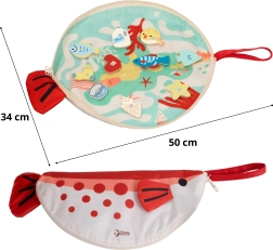 Den fiskeformede spillemåtte foldes efter leg nemt til et etui med lynlås, hvor alle dele kan opbevares. Den høje trækvalitet og sikre materialer sikrer lang holdbarhed og modstandsdygtighed ved daglig brug.
