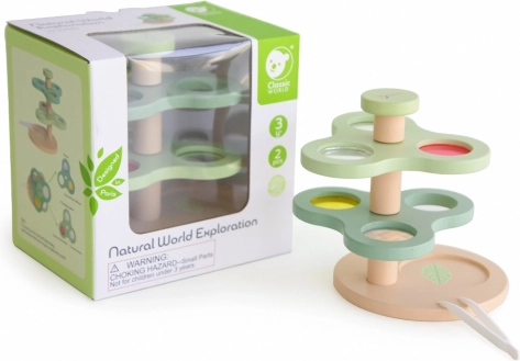 Træmikroskop og lup 2-i-1 "Naturforskning" fra Classic World, som vækker børns interesse for videnskab og opdagelse. Dette legetøjssæt indeholder farvede linser, prismer, forstørrelsesglas og konkave spejle, hvilket fremmer kreativitet og forbedrer finmotorikken.