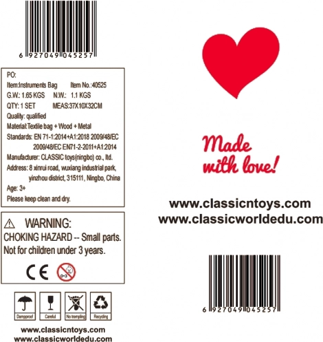 Det sjove sæt fra Classic World er et fremragende valg til at udvikle børns musiske færdigheder allerede fra treårsalderen. Derudover er alle dele lavet af træ og behandlet med ikke‑toksiske farver.