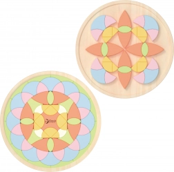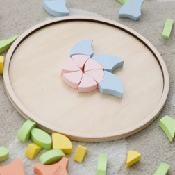 Dette træpuslespil giver børn mulighed for at skabe et ubegrænset antal mønstre, enten efter skabeloner eller deres egen fantasi. Det egner sig perfekt til selvstændig leg såvel som fælles skabelse med venner eller voksne.