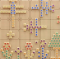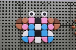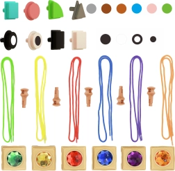 - - 64 geometriske pløkker (4 former, 6 farver)