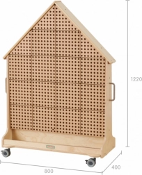 Tavlen formet som et hus giver maksimal anvendelsesfleksibilitet, det kan placeres hvor som helst. Med hjul med bremse er det nemt og hurtigt at flytte. Tavlen er tovejs, så den giver børnene mulighed for at deltage i forskellige uddannelsesmæssige aktiviteter eller arbejde i mindre grupper.