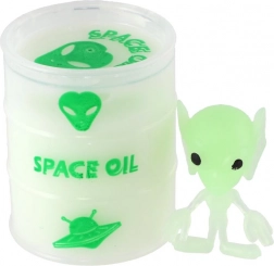 Sjovt og fjollet lysende slim i en tematisk tønde med en samlerfigur af et rumvæsen glæder både børn og voksne. Slimet er blødt, sejt og elastisk, skønt at klemme, strække og lade flyde mellem fingrene. Takket være effekten lyser i mørke bliver legen endnu sjovere. Den kompakte emballage med en diameter på ca. 6 cm er let at opbevare og ideel som en lille gave eller antistress-legetøj.