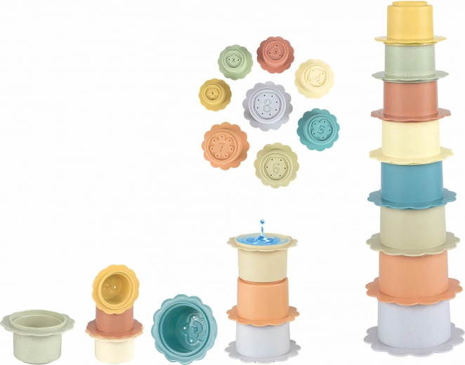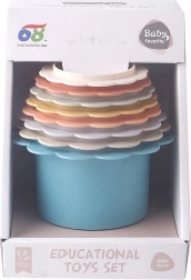 Stabletårn af kopper Blomst vil glæde enhver barn med sine klare farver og muligheden for at bygge forskellige konstruktioner. Sættet indeholder 8 stablekopper, som udvikler de motoriske færdigheder.