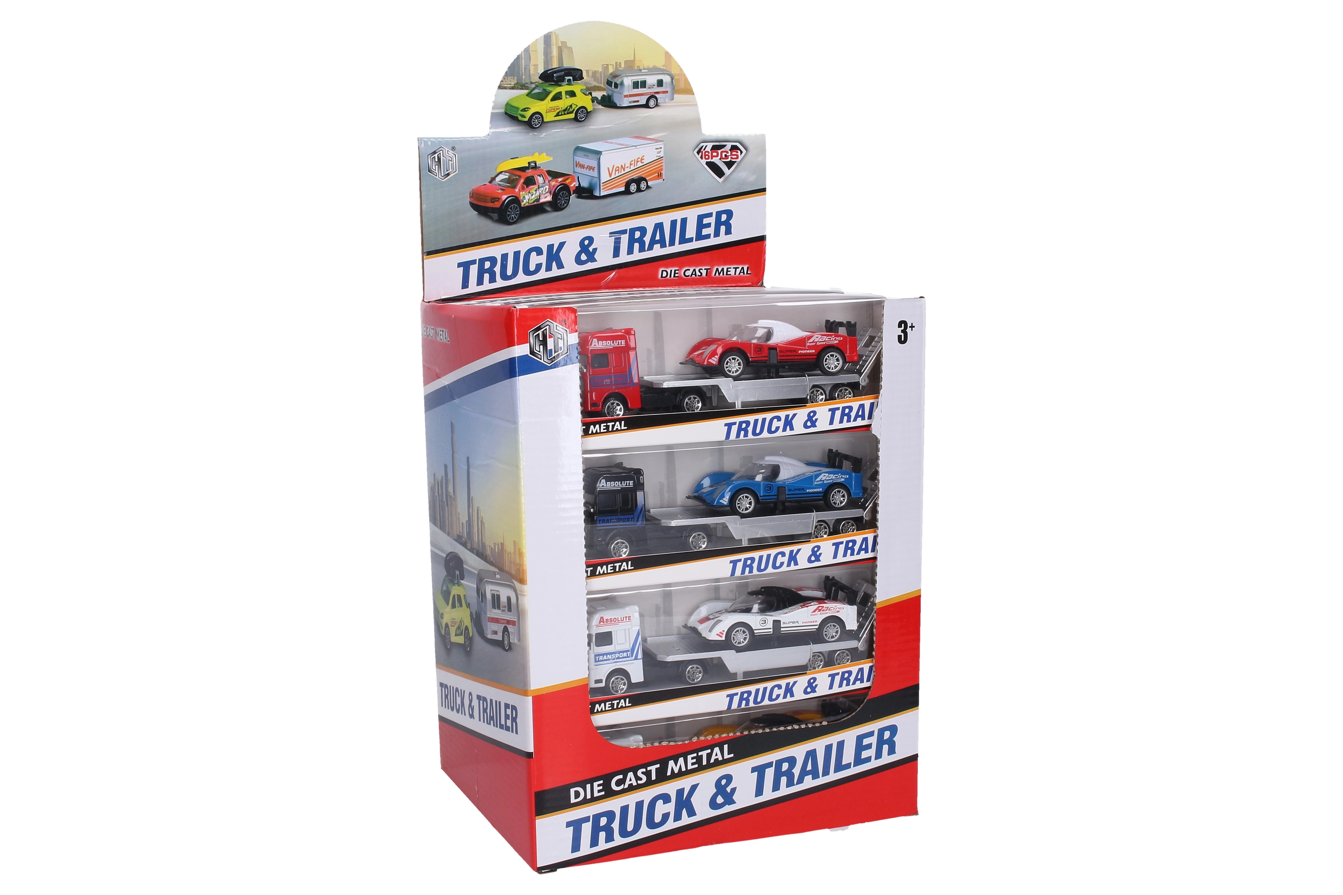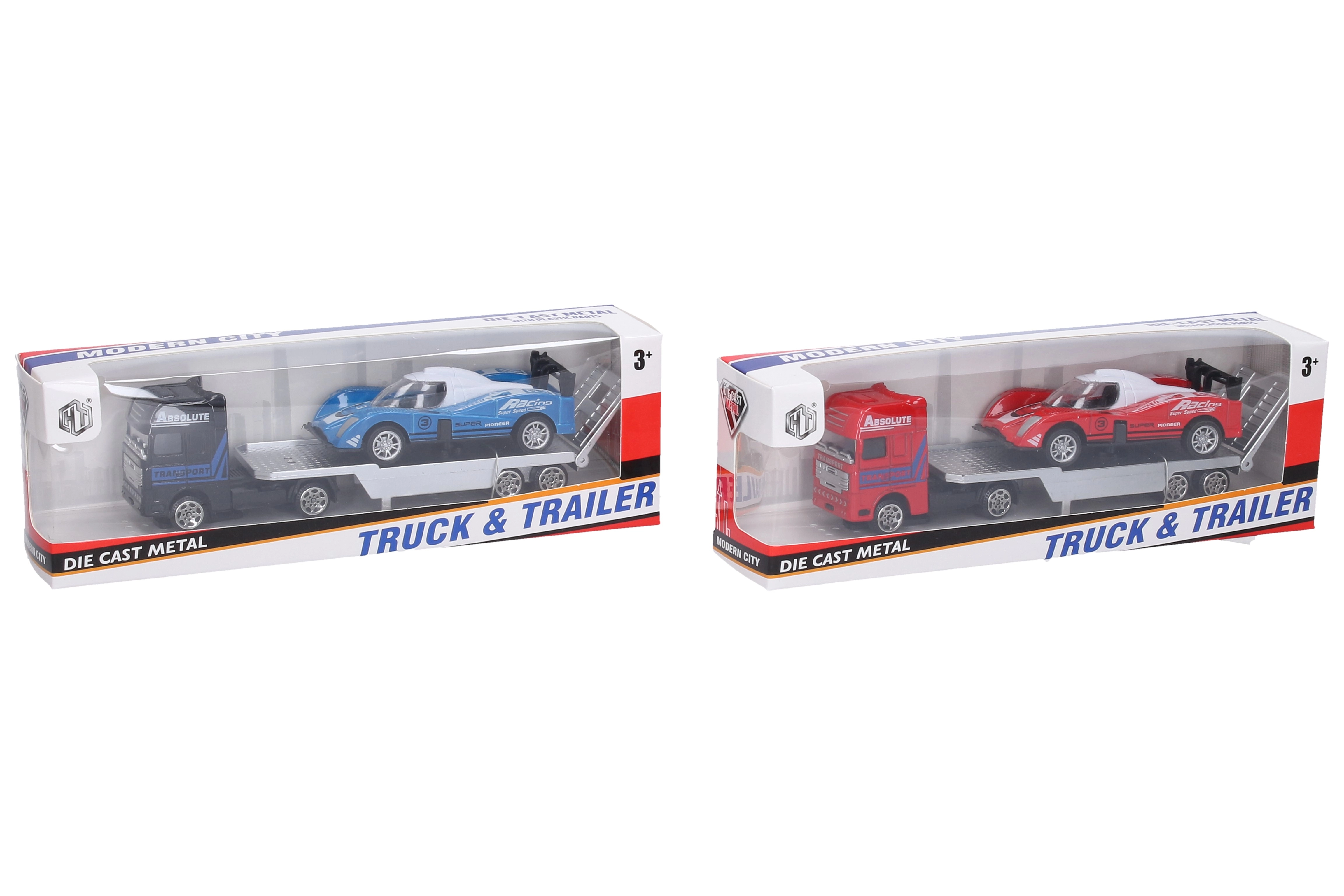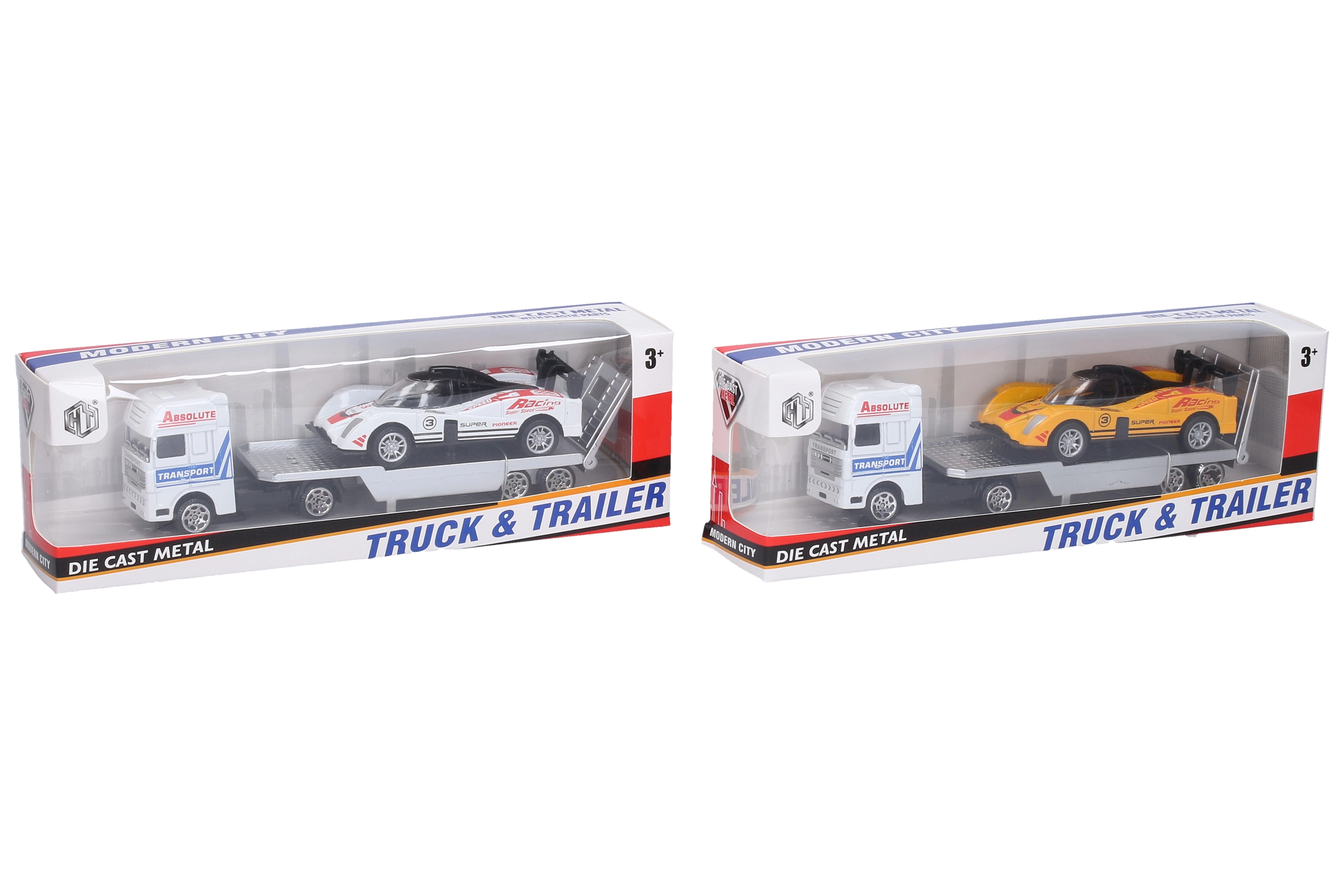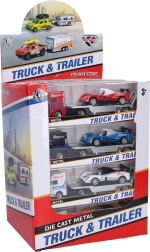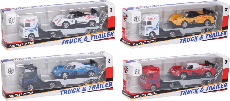 Lastbiltrækker med racerbil er et fremragende valg for fans af billøb. Denne metalbil med friløb og kompakte mål vil sætte gang i enhver leg.