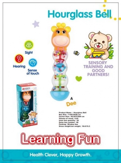 Denne giraf-formede rangle er ikke kun et fantastisk legetøj til dit barn, men hjælper også med at udvikle dets sansemæssige færdigheder. Takket være sandlignende gennemløbsfunktion og de klare farver holder den barnets opmærksomhed i lang tid.