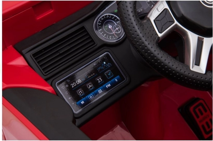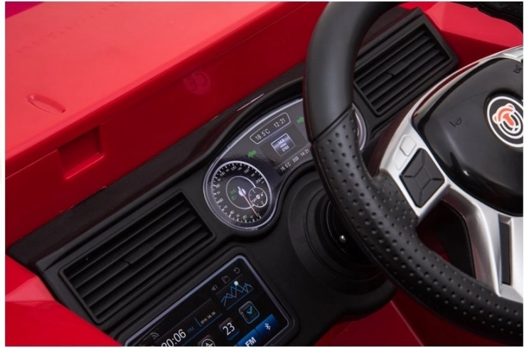 Inde i bilen findes et drejeligt rat med startknap og et instrumentbræt med imitationer af målere. De tekniske specifikationer omfatter et 12V7 Ah-batteri og to motorer med en effekt på 2x45W, som muliggør en hastighed på 2 til 4 km/t. EVA-gummihjul giver komfortabel kørsel på forskellige underlag.