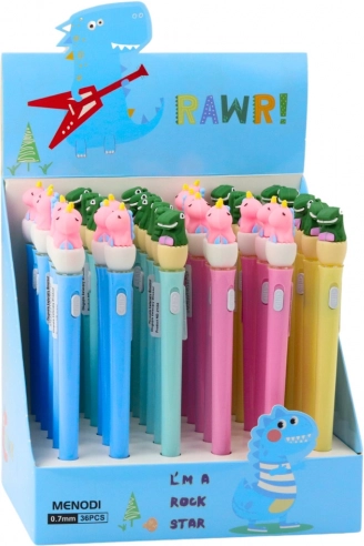 Den øverste del af pennen er pyntet med en gummifigur af en dinosaur, som fungerer som et dekorativt element og giver helheden charme. Takket være hætten er spidsen godt beskyttet mod udtørring, og den indbyggede knap aktiverer den effektfulde LED-belysning, som lyser op ved hvert tryk.