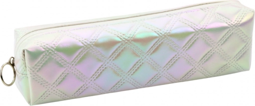 Skolepenalhus i perlemorsfarve med reliefmønster af romber. Elegant og praktisk tilbehør til daglig brug.