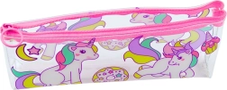 Penalhuset er lavet af et holdbart, gennemsigtigt materiale, som gør det nemt at se indholdet, hvilket gør organiseringen betydeligt lettere. Penalhuset lukkes med en solid lynlås, som sikrer bekvem og sikker opbevaring af penne, blyanter, farveblyanter og andre småting.
