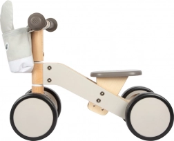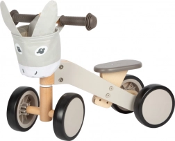 Træløbecyklen med æselmotiv er ideel til børn, der lærer at bevæge sig sikkert og selvsikkert. Den meget stabile konstruktion sammen med de bløde, gummibelagte hjul beskytter ikke kun gulvene, men sikrer også stille kørsel. Ergonomiske gummihåndtag giver børn et fast greb og nem styring.