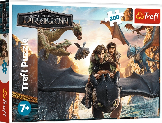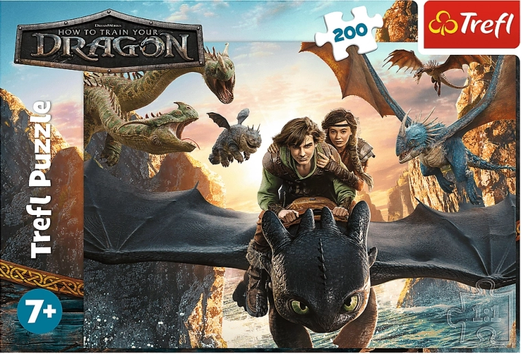 Oplev dragernes magi med TREFL-puslespillet Tandløs og venner. Samling af 200 brikker udvikler tålmodighed, koncentration og finmotorik, mens resultatet imponerer med kraftige farver og et detaljeret motiv.