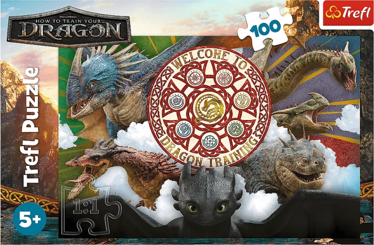 Børnepuslespil fra Trefl med motiv fra filmen Sådan træner du din drage byder på 100 brikker og danner efter samling et billede på 410 × 275 mm. Fremstillet af kvalitets og miljøvenlige materialer; special kalandreret papir reducerer genskin og gør det lettere at samle.