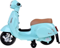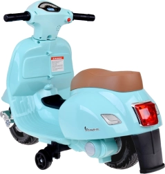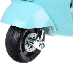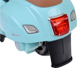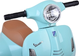 Vespa scooteren med batteri er ideel til både indendørs og udendørs brug takket være dens fantastiske stil og små dimensioner. Den kan uden problemer klare en tur i parken eller på legepladsen. Siderne giver stabilitet under kørsel, bidrager til sikkerhed og en behagelig oplevelse for dine børn. Med nem ind- og udstigning fra sædet kan børnene komfortabelt nyde rideturen. Scooteren har lysende lys under kørsel og en knap på styret med barnets lydhorn.