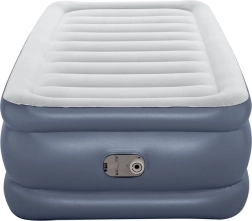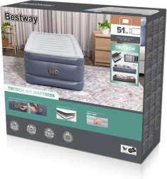 Den oppustelige Bestway-madras er løsningen for dem, der søger komfort og praktisk anvendelighed. Takket være den indbyggede elektriske pumpe kan madrassen pustes hurtigt og nemt op på cirka 3 minutter. Den højere konstruktion sikrer stabilitet og gør det lettere at komme op fra madrassen.