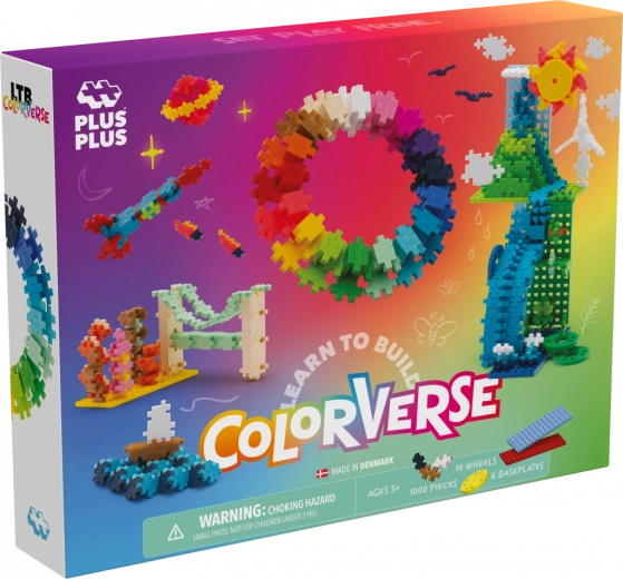 Plus-Plus Lær at bygge Regnbue super sæt bringer sjov og kreativitet i form af 1000 dele. Dette sæt er ideelt til kreative bygninger af 2D og 3D modeller, støtter udviklingen af kreativ tænkning og finmotorik hos børn.