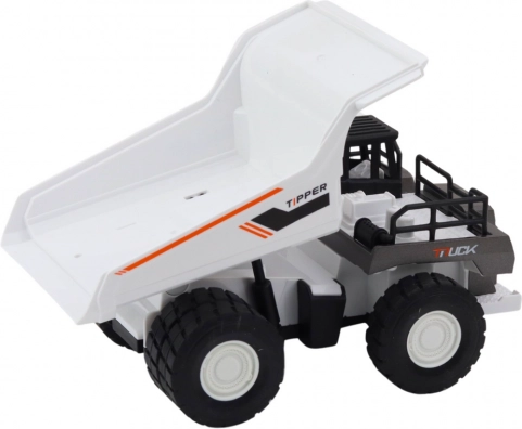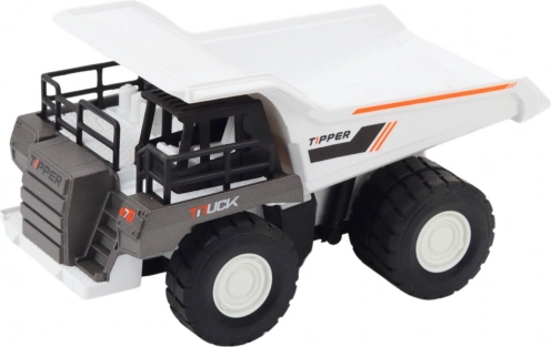 Robust byggedumper med bevægelig lad giver børn, der interesserer sig for arbejdsmaskiner og byggearbejde, timevis af sjov. Modellen i hvid-grå er beriget med metaldele, som øger holdbarheden og giver legetøjet et realistisk præg.