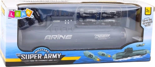 Ubåd med torpedoer og friktionsdrev, 28 cm, til små sømænd. Realistisk legetøj til udvikling af færdigheder og sjov.