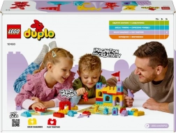 Dette smarte 2-i-1 LEGO DUPLO spil og byggesæt giver børn læring gennem leg. Byg sammen et farverigt slot, drej pilen, og flyt dyrefigurerne på spillepladen. Afhængigt af den farve, du lander på, tilføjer du den rigtige klods til slottet – holdånden vinder, når alle figurer når frem til slottet!