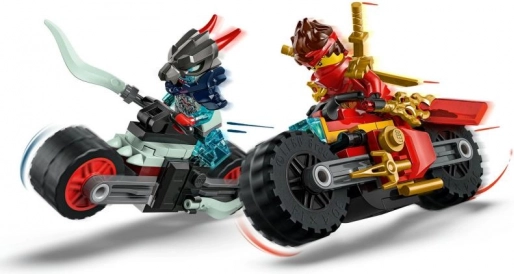 Oplev et adrenalinfyldt opgør mellem godt og ondt med byggesættet LEGO NINJAGO Kais motorcykelløb. To ninja-motorcykler med bevægelige hjul, to minifigurer og ikonisk ninja-udstyr giver hurtig action og kreativ leg for børn fra 6 år.