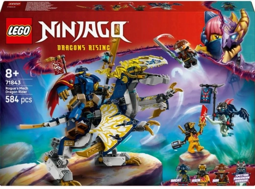 Oplev den dynamiske NINJAGO-verden med et ombyggeligt sæt, der lader børn fra 8 år genskabe scener fra sæson 3 af serien Dragenes Oprør. Den separat styrbare mech med sværd og dragemaskine med bevægelige vinger, hoved, kæbe, ben og hale kan kombineres til den imponerende Rogue dragerytter-mech. Spændende slag sikres af 4 minifigurer, inklusive modstanderne Rox og en kriger fra Spektraldragerne med en standard med hemmelig besked.