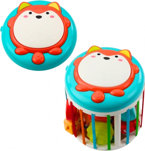 Den interaktive terning er udstyret med funktioner som formsorterer, trykelementer, stænger til at presse klodser igennem samt et musikpanel med lys- og lydeffekter. Øverst sidder en ræv med en tromme, der aktiverer lyd ved tryk. Terningen afspiller forskellige lyde og melodier, som beriger barnets høresans og motiverer til aktivitet.
