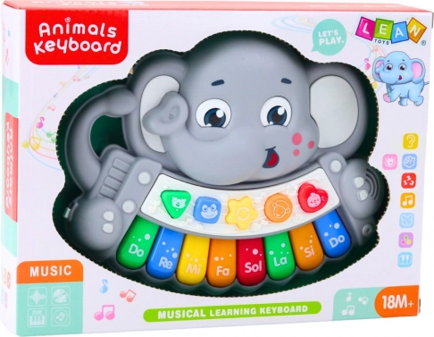 Interaktivt klaver Lille Elefant med lyde og melodier udvikler børn fra 18 måneder. Sikkert og nemt at betjene.