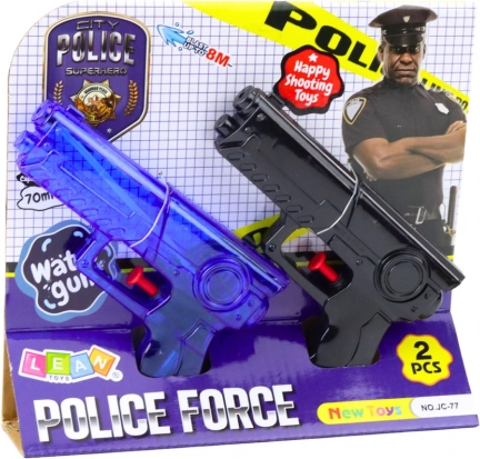 Dette sæt indeholder to vandpistoler, som er ideelle til aktiv og underholdende leg udendørs. Børn kan lade som om de er politibetjente og lege vandkampe i haven, på stranden eller på legepladsen. Fremstillet af plast af høj kvalitet, som er modstandsdygtig over for mekaniske skader og sikker i kontakt med vand.