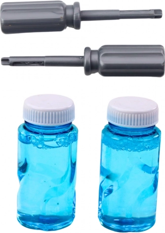 Pakken indeholder to beholdere med væske og en lille skruetrækker, som barnet kan bruge til at skille flyets dele ad og samle dem igen, hvilket styrker færdigheder, koordination og teknisk nysgerrighed. Produktet er lavet af plast af høj kvalitet og er egnet til børn fra 3 år.