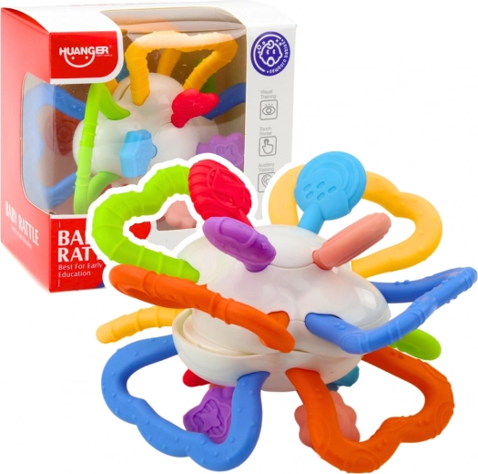 Den kompakte størrelse og lette konstruktion gør dette legetøj ideelt til brug derhjemme såvel som på gåture eller rejser. De iøjnefaldende farver fanger barnets opmærksomhed, og den stille raslen virker beroligende og vækker nysgerrighed. Legetøjet giver ikke kun underholdning, men også reel støtte til barnets udvikling fra de første måneder af livet.