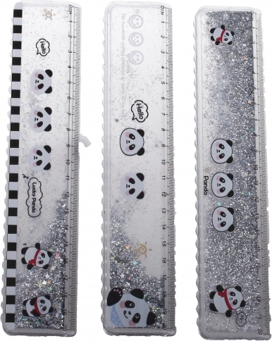 Lineal 20 cm med pandamotiv, indeholder væske og glimmer. Fås i tre varianter.