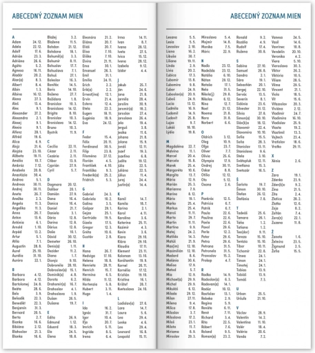 - Slovakisk kalendarium med navne, helligdage og mindedage
