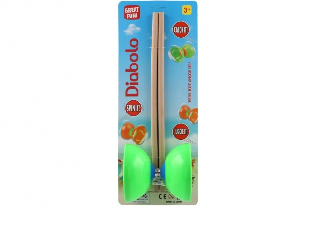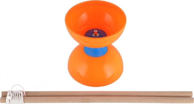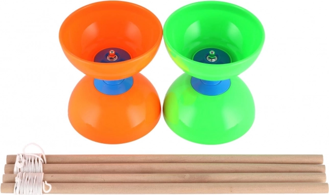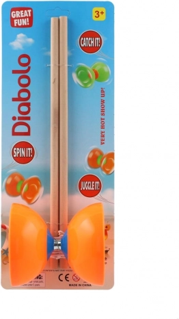 Den store diabolo med robuste plastskåle og træstave giver masser af sjov og træning af motorik. Takket være de brede skåle og den stabile aksel er diabloen meget stabil, holder farten godt og tilgiver fejl – ideel til at lære og udvikle tricks.