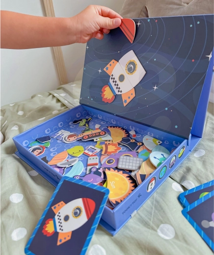 Magnetisk puslespil fra mærket TOOKY TOY er et stimulerende og sjovt spil, der tager unge opdagelsesrejsende med på et rum-eventyr. Det indeholder 12 unikke rum-motiver sammensat af magnetiske puslespilsbrikker.