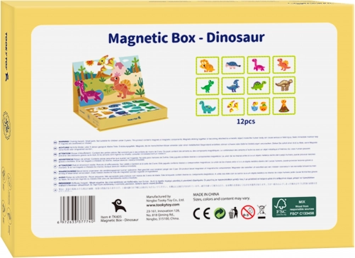 Det magnetiske puslespil fra Tooky Toy lader børn træde ind i dinosaurernes fascinerende verden. Det indeholder 12 unikke mønstre af dinosaurer, som samles med magnetiske brikker på en magnettavle.