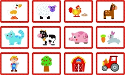 - Mønstrede brikker med dyr og gårdgenstande